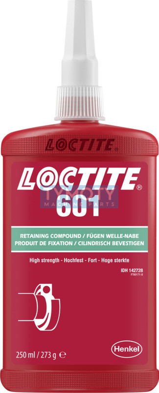 Loctite 601, IDH 1516469, je jednosložkové akrylátové lepidlo zelenej farby s nízkou viskozitou, určené na upevňovanie lícovaných valcových súčastí s vysokou pevnosťou do škáry 0,1 mm.