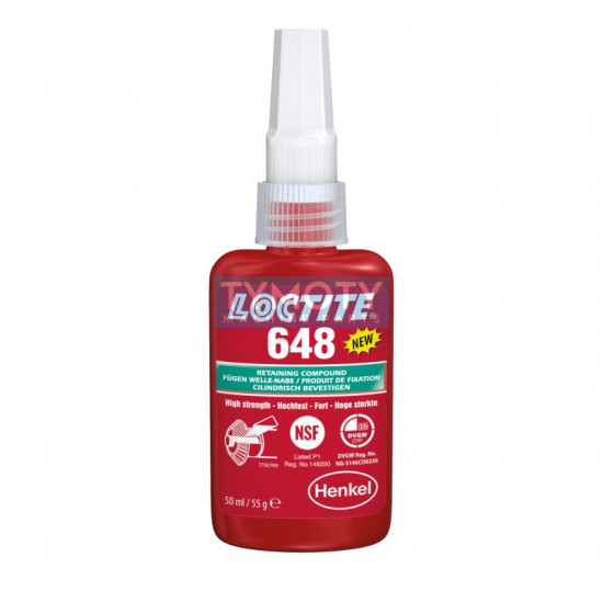 Loctite 648 - 5 ml upevňovač spojov VP, IDH 1804041, je vysokopevnostný anaeróbny akrylátový lepidlo na valcové súčiastky s teplotnou odolnosťou -55 až +175 °C a škárou do 0,15 mm.