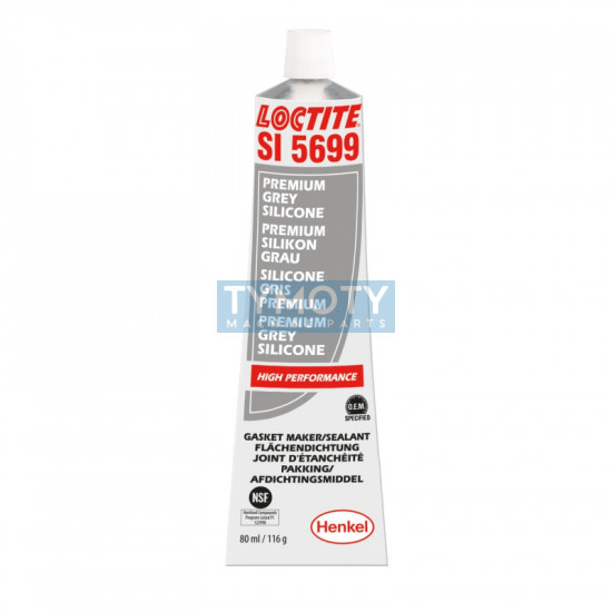 Loctite SI 5699, IDH 142480, je šedé silikónové plošné tesnenie s objemom 300 ml, nekorozívne, odolné voči oleju, vode a glykolu, ideálne na tesnenie prírub na kovových a plastových povrchoch.