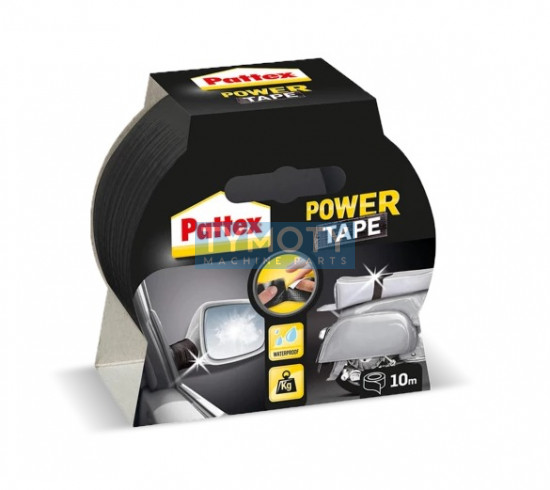 Pattex Power Tape, IDH 1688910, je 10 m dlhá transparentná páska vystužená tkaninou, odolná voči vode a tlaku, vhodná na profesionálne použitie v interiéri aj exteriéri.