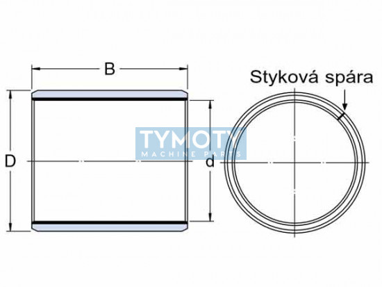 Klzné puzdro zvinuté z oceľového plechu s vrstvou kompozitu PTFE, d=20 mm, D=23 mm, B=20 mm
